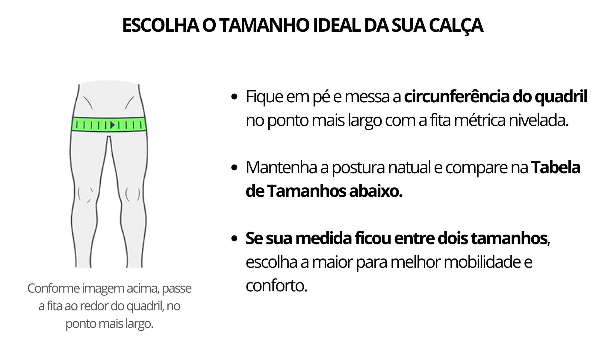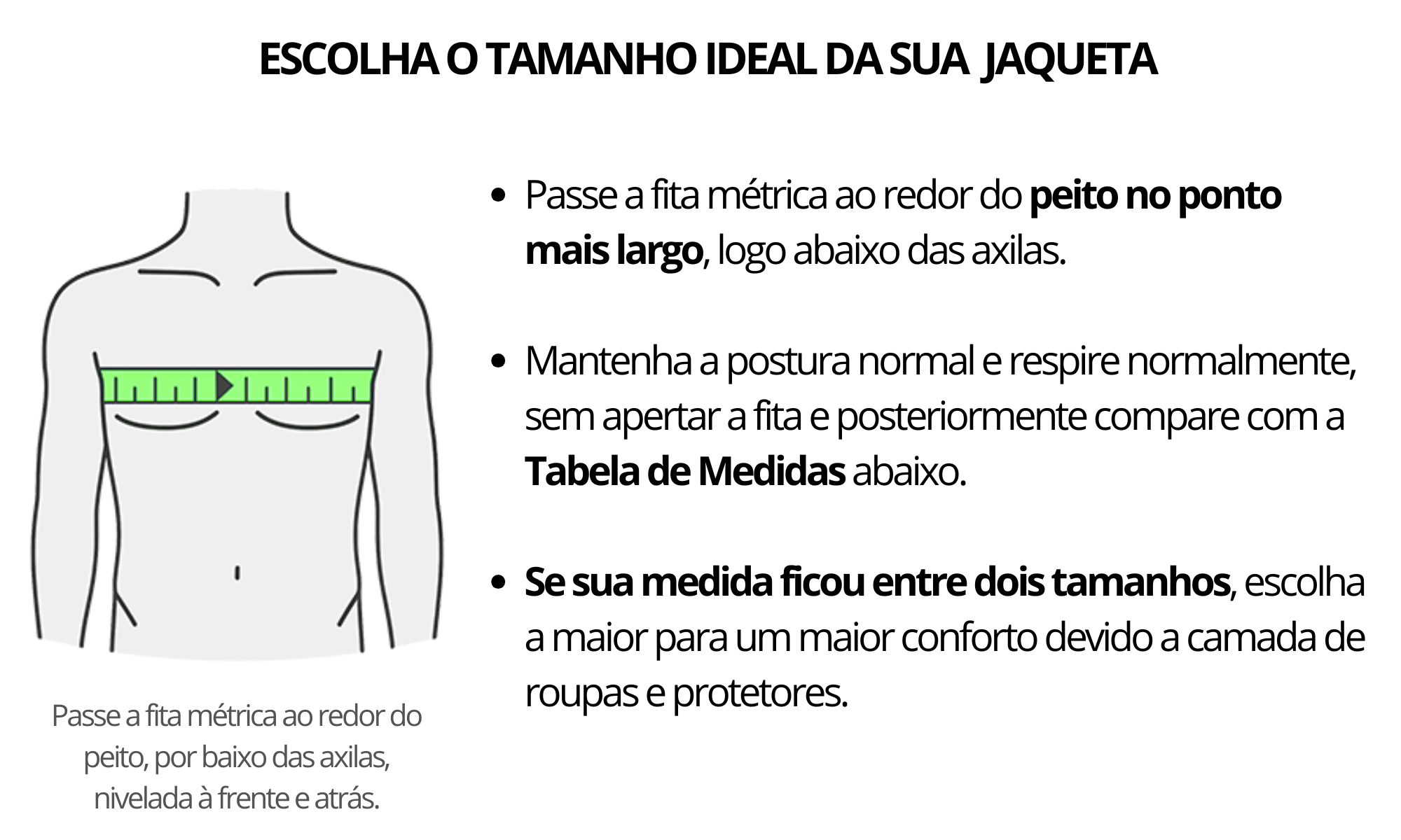 Acesse o guia de medidas para escolher o tamanho correto